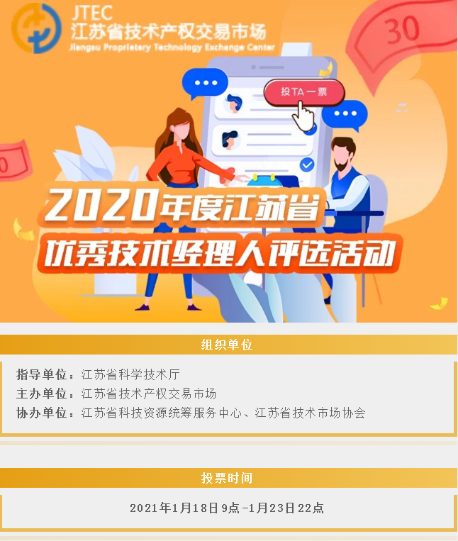 2020年度江蘇省優(yōu)秀技術(shù)經(jīng)理人評選活動(dòng)開(kāi)始投票啦!