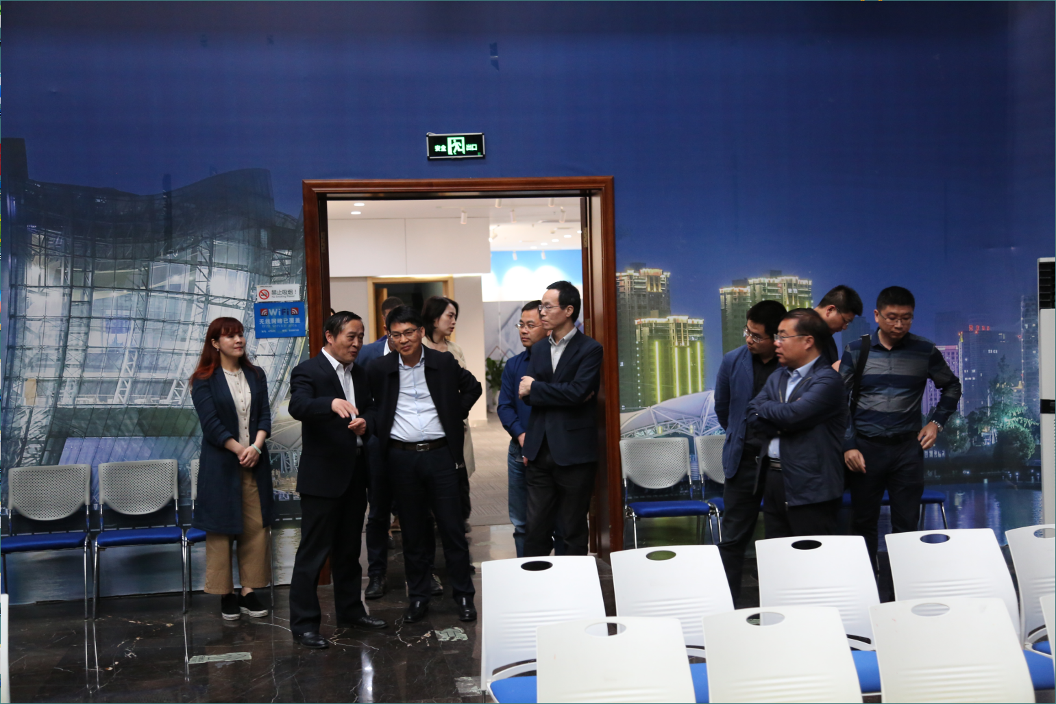 隨后,代表團一行參觀(guān)了創(chuàng )客咖啡與項目洽談區、高新技術(shù)展示廳、多功能演播大廳等中心主要功能區域。參觀(guān)期間,孫影總經(jīng)理介紹了HTEC眾創(chuàng )空間的建設運營(yíng)情況、淮海經(jīng)濟區技術(shù)產(chǎn)權交易中心網(wǎng)站的服務(wù)板塊內容,以及多功能演播大廳承辦會(huì )務(wù)活動(dòng)等情況。