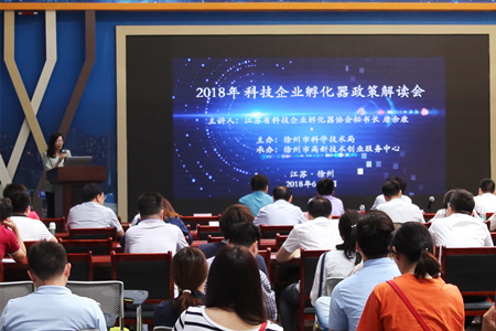 為進(jìn)一步推進(jìn)我市雙創(chuàng )載體工作,促進(jìn)雙創(chuàng )載體提質(zhì)增效,6月1日,由徐州市科技局主辦,徐州市高新技術(shù)創(chuàng )業(yè)服務(wù)中心承辦的2018年全市科技企業(yè)孵化器政策解讀會(huì ),在中國礦業(yè)大學(xué)國家大學(xué)科技園舉行。會(huì )議由高新技術(shù)創(chuàng )業(yè)服務(wù)中心主任周麗主持,市科技局高存寶副局長(cháng)、各縣(市)、區、高新區、經(jīng)濟開(kāi)發(fā)區科技局分管領(lǐng)導、科室負責人,以及擬申報省級以上孵化器認定、績(jì)效評價(jià)的園區負責人等近百人參會(huì )。
